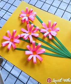 benodigdheden : groene rietjes, wattenschijfjes, gele verf, gekleurd lintje, groen papier of inpakpapiertje